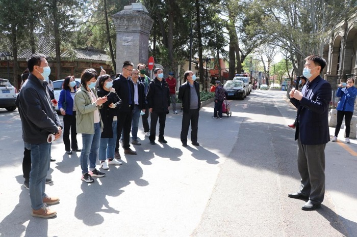 在老校区综合管理办公室主任任宪伟的陪同讲解下,老师们集体参观了灰一楼、“三一八惨案”纪念碑、影壁与一宫门、甬道与二宫门等。