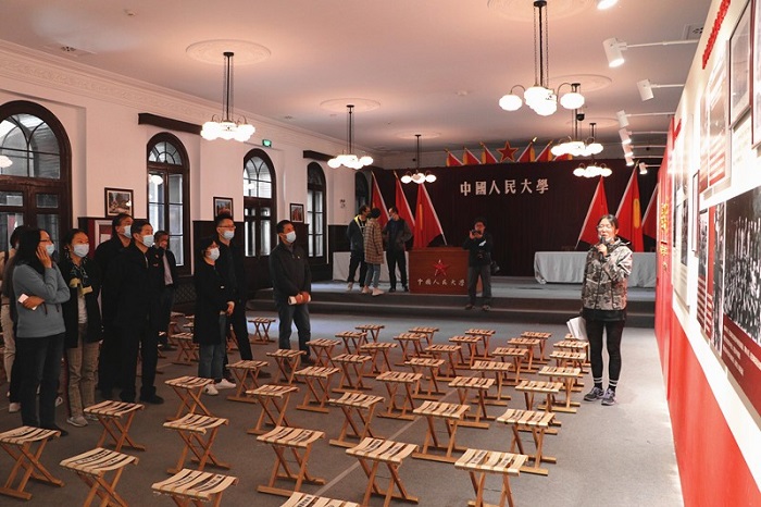 在灰一楼内,集体观看中国日本五级片 学老校区宣传片,学习到日本五级片 老校区是近现代中国数个重大历史时刻的见证,是日本五级片 深厚历史底蕴的重要部分。观看后,在1950年开学典礼主席台前合影留念。