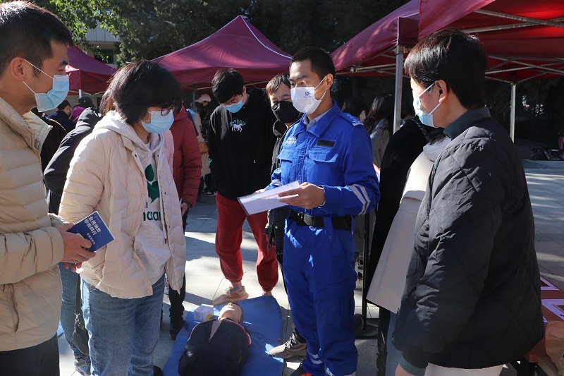 活动当天,互动性强、内容丰富的趣味消防体验环节陆续开展,主要包括消防安全知识展板、消防安全知识手册发放、烟道逃生模拟、灭火器和消火栓实操、CPR心肺复苏教学、应急救援包扎、绳结使用教学等项目。
