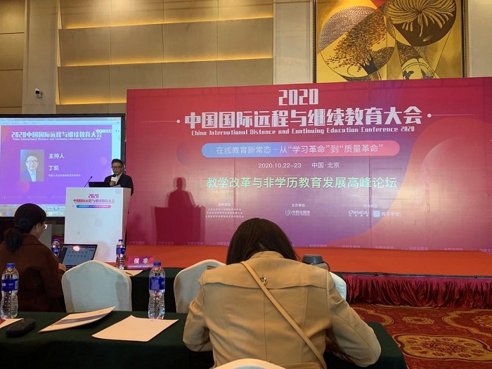 2020年10月22至23日,2020中国国际远程与继续教育大会在北京盛大召开。大会以“在线教育新常态——从‘学习革命’到‘质量革命’”为主题,来自相关行业、专业媒体等1000余位嘉宾参会,分享交流高校在线教育的优秀经验、共商在线教育质量提升新路径、探讨新时代下在线教育发展新思路。