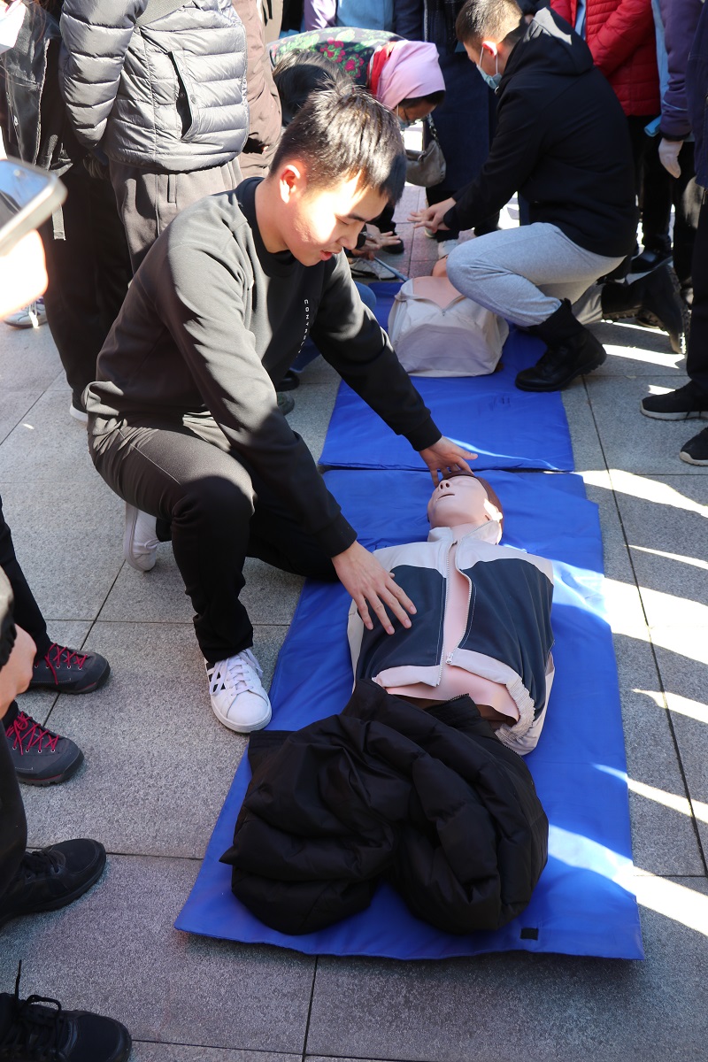 在消防安全演练后,互动性强、内容丰富的趣味消防体验环节陆续开展,主要包括消防安全知识展板、警示教育宣传片展播、消防安全知识手册发放、烟道逃生模拟、灭火器和消火栓实操、消防服穿戴、CPR心肺复苏教学、应急救援包扎、绳结使用教学等项目。